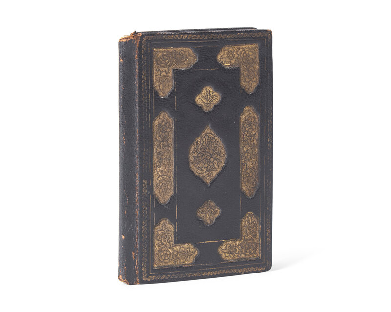 Paris: The Black Sun Press, 1928. First and only edition, #2 of only 20 numbered copies on hand-made gray paper. 16mo. (74) pp., including front blank. Facsimile manuscript text in Persian, printed in black and in red within gilt and black ruled border; colophon printed in English. Illustrated with 27, largely erotic, hand-colored miniatures. Publisher's dark navy blue morocco, stamped in gilt with a Persian-style arabesque pattern, small losses to spine ends, light wear to joints; all edges trimmed; brown leather endleaves; in tan buckram chemise. Minkoff A-14