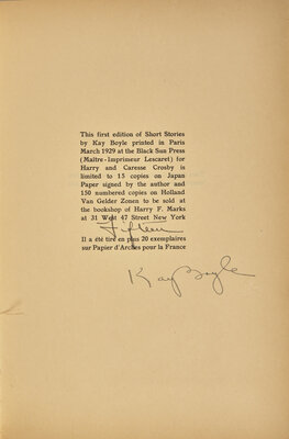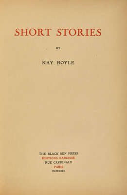 [Black Sun Press] Boyle, Kay. Short Stories