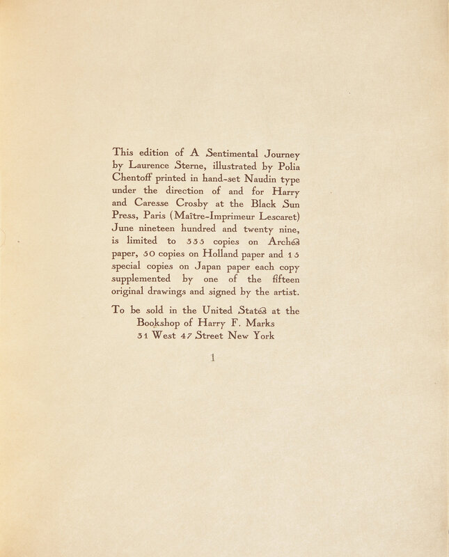 [Black Sun Press] Sterne, Laurence. A Sentimental Journey Through France and Italy