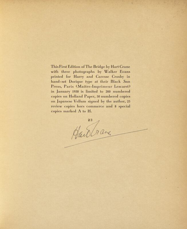 [Black Sun Press] Crane, Hart. The Bridge