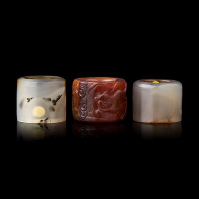 Three Chinese Agate Archer's Rings