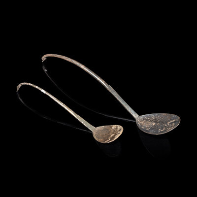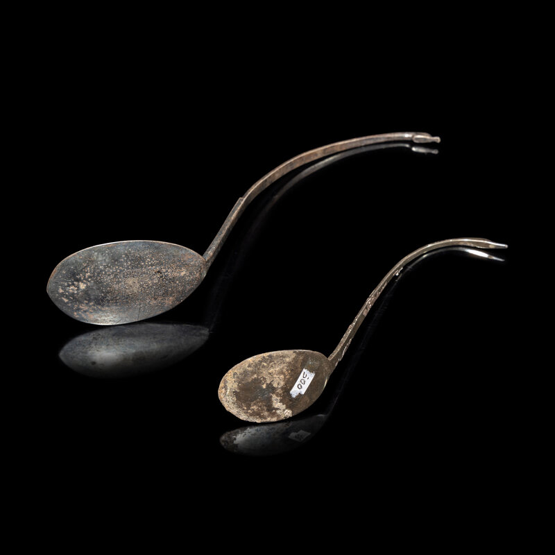 Two Chinese Silver 'Goose' Tea Spoons, Ze, Tang Dynasty