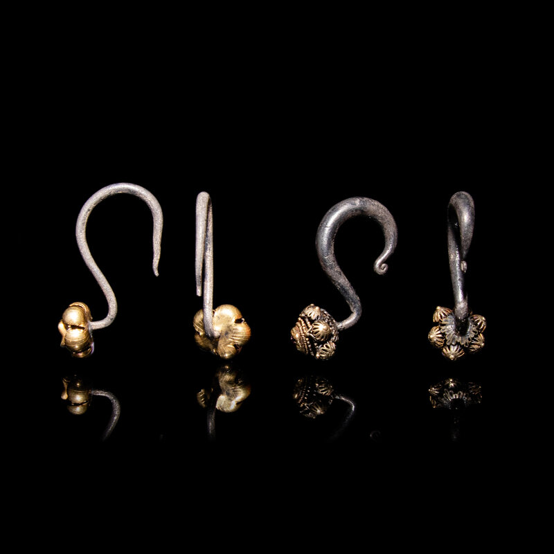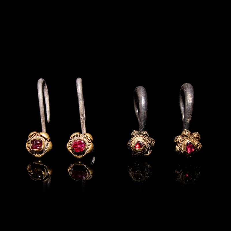 Two Pairs of Chinese Gilt Silver and Ruby Inset 'Clove' Earrings, Dingxiang, Ming Dynasty