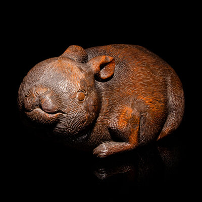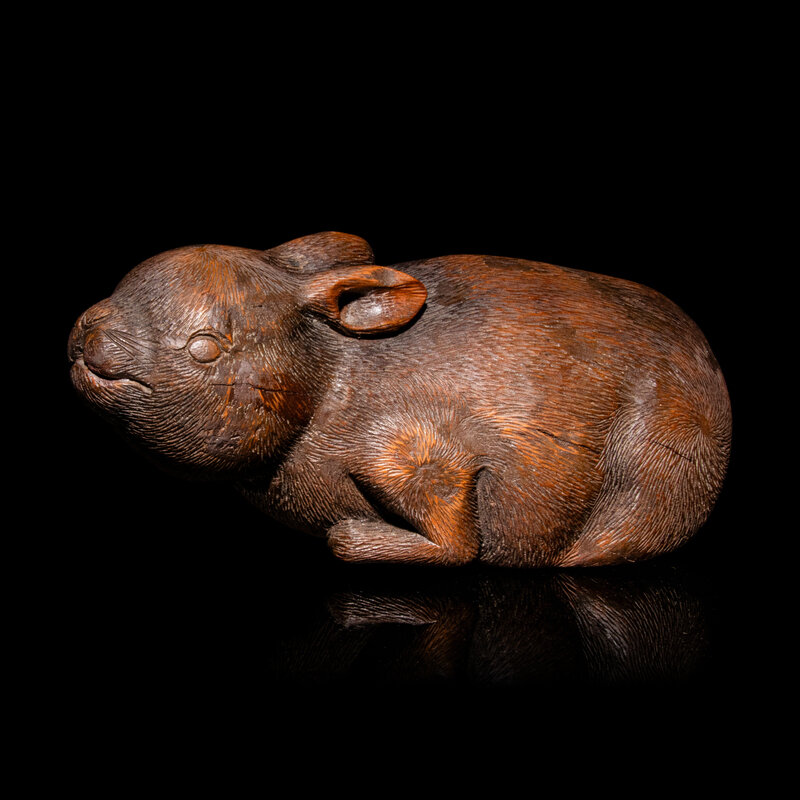 A Charming Chinese Bamboo Root Carving of a Rabbit, 19th Century