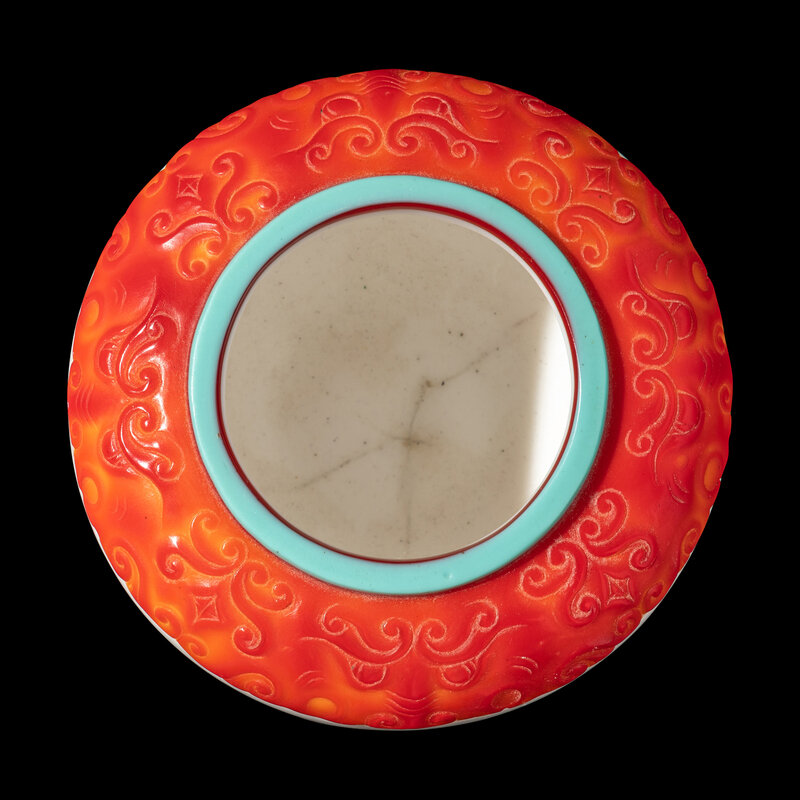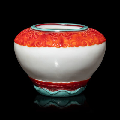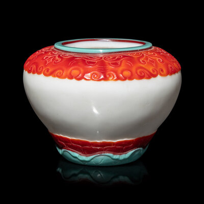 A Chinese Turquoise and Ruby Overlay White Glass Water Pot, Qianlong Mark and Period