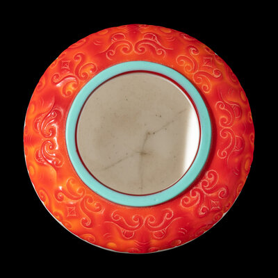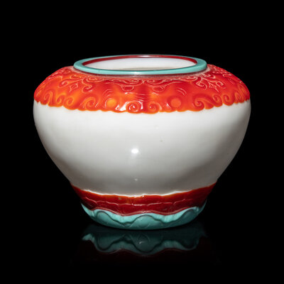 清乾隆 白地套彩料饕餮蓮紋水盂