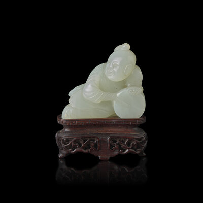 A Chinese White Jade Carved Boy, Qing Dynasty