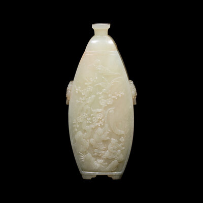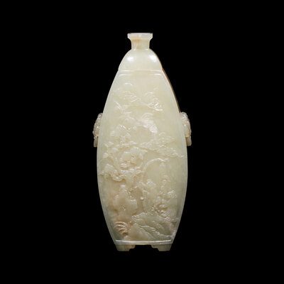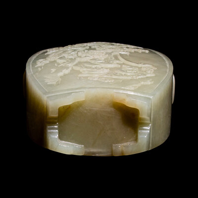 清晚期 青白玉浮雕童戲圖蓋瓶