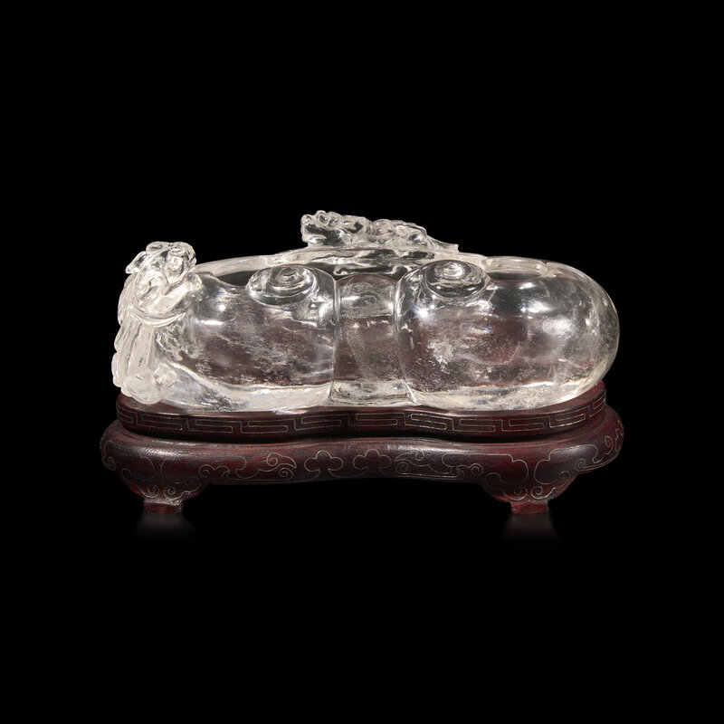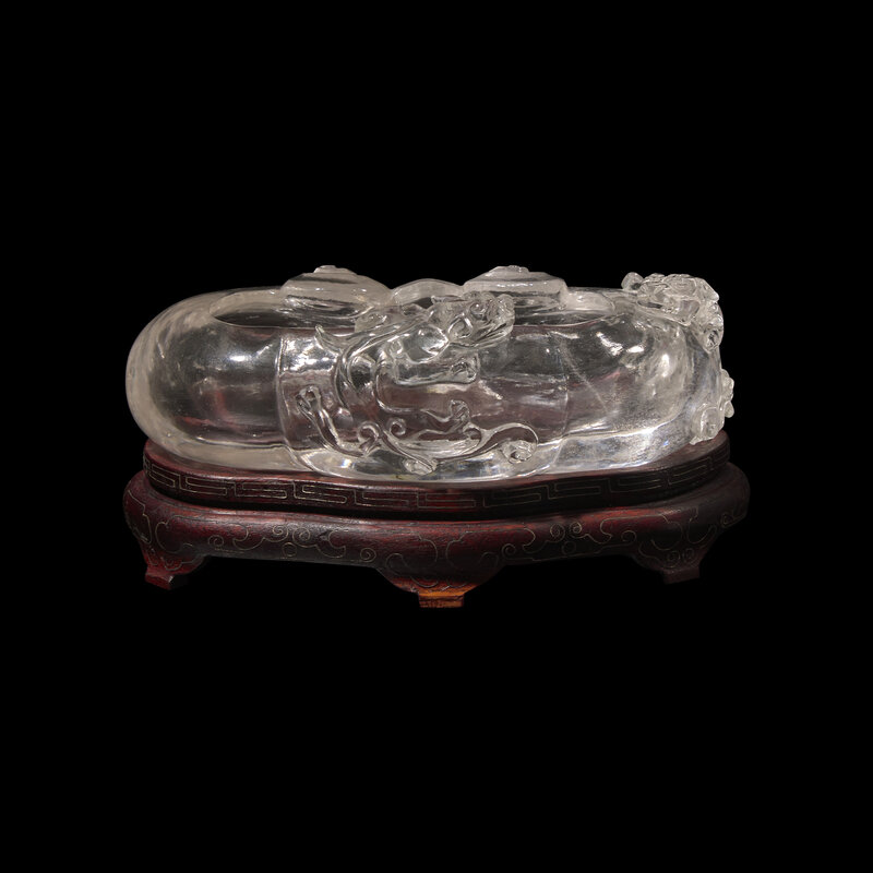 A Chinese Rock Crystal 'Qilong and Ruyi Head' Brush Washer, 19th-20th Century