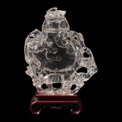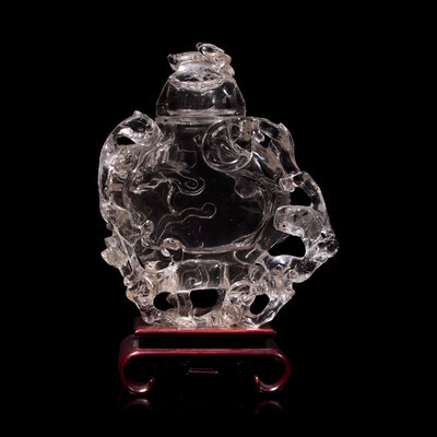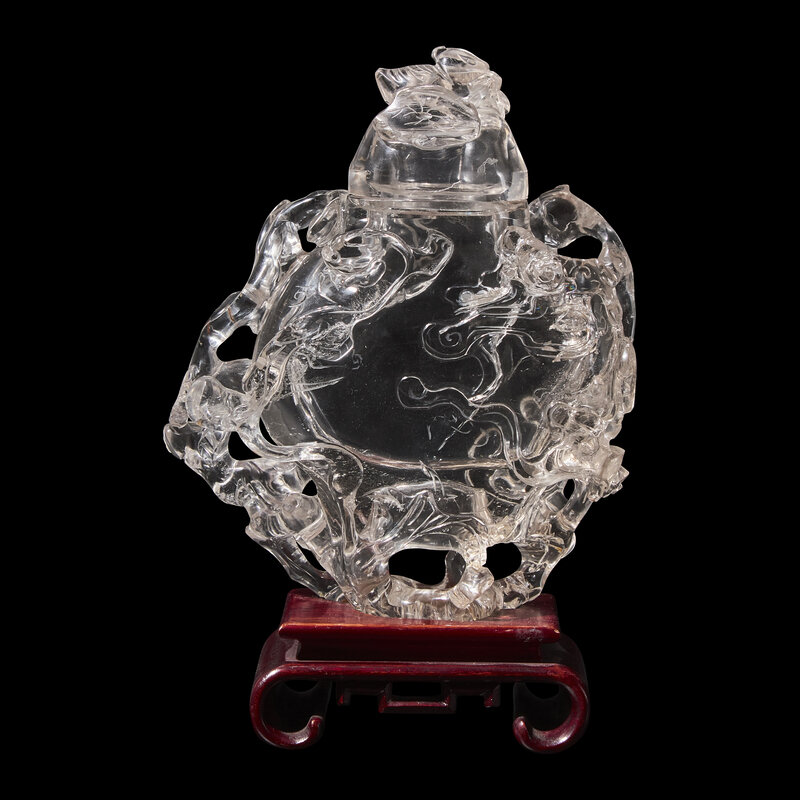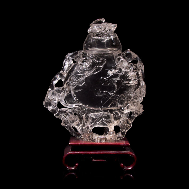 A Chinese Rock Crystal Vase and Cover Carved with Clouds, 20th Century