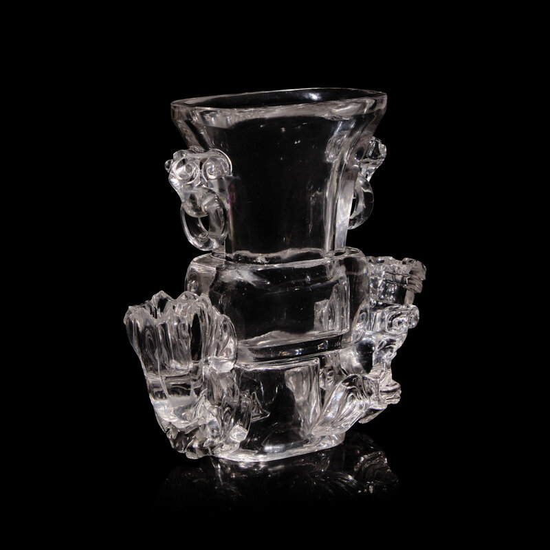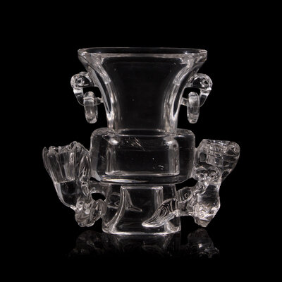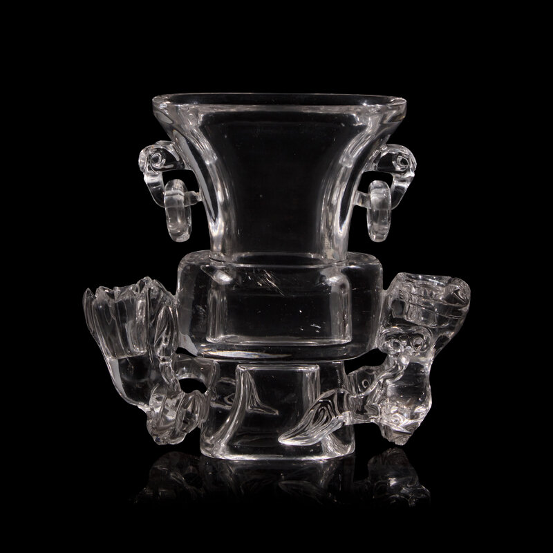 A Chinese Rock Crystal Vase Flanked by Flowers, early 20th Century