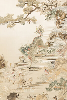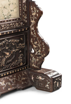 晚清-民国 粤绣瑞獸圖紅木嵌螺鈿大座屏