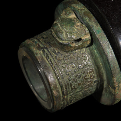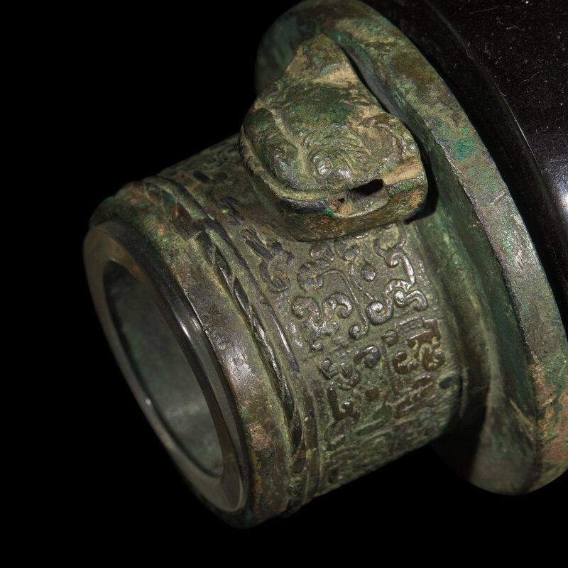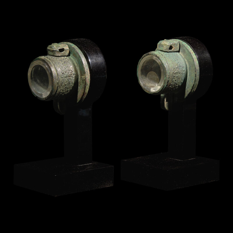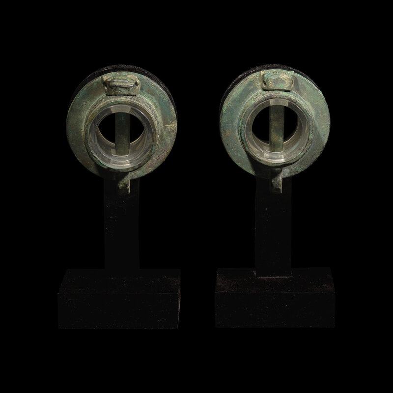 A Pair of Chinese Bronze Chariot Fittings, Warring States Period/Han Dynasty