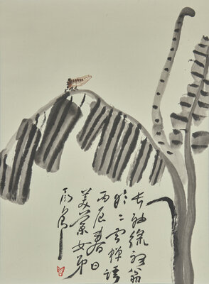 款識:長袖絲▯翁,▯▯云禪語。丙辰(1976)春日,蘭女弟,丁衍庸。