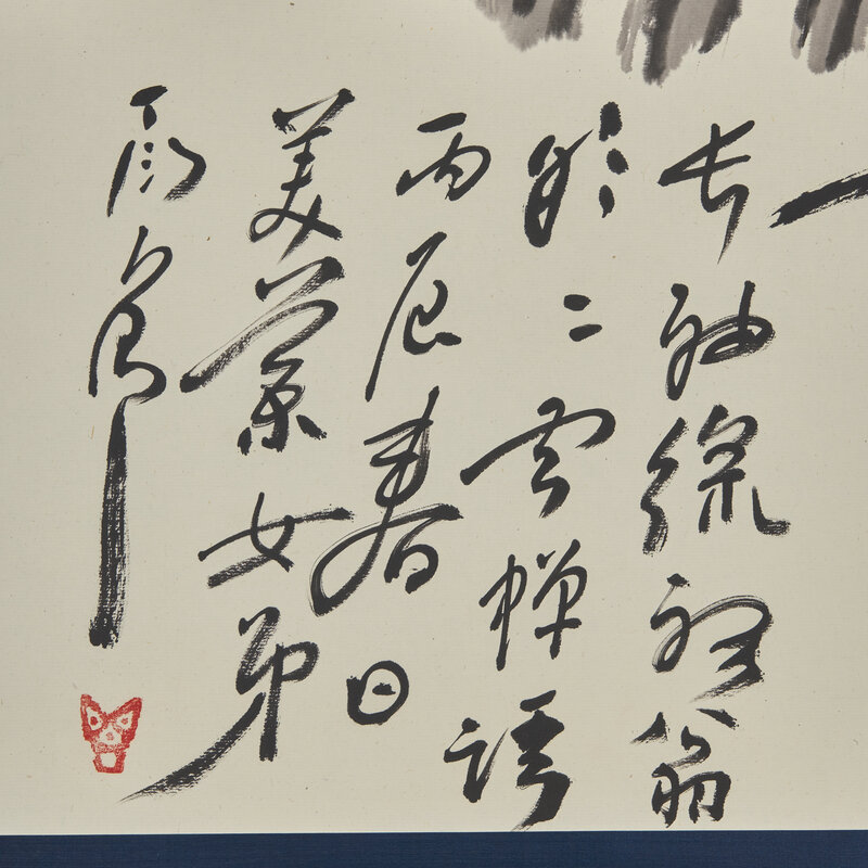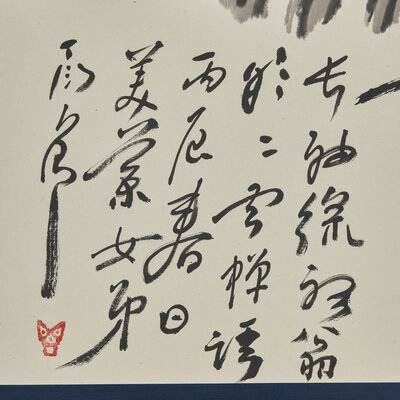 signed and inscribed, dated to a bingchen year, Spring, equivalent to 1976, dedicated to Meilan Nvdi, with one seal at lower center.