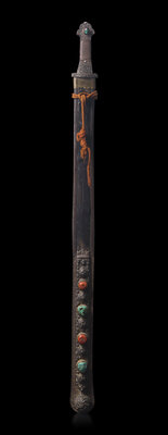 A Tibetan Embellished Sword and Scabbard, Dpa'Dam, 19th Century or Earlier