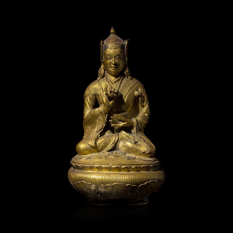 A Tibetan Gilt Copper Alloy Figure of Padmasambava, 18th/19th Century or Earlier
