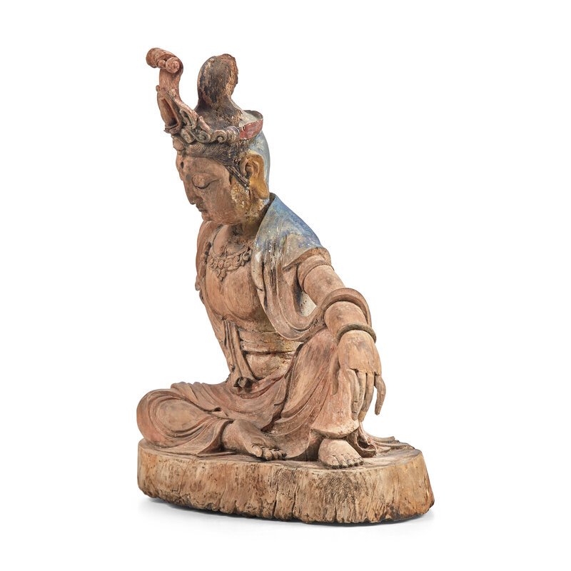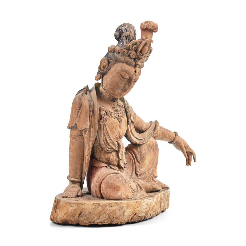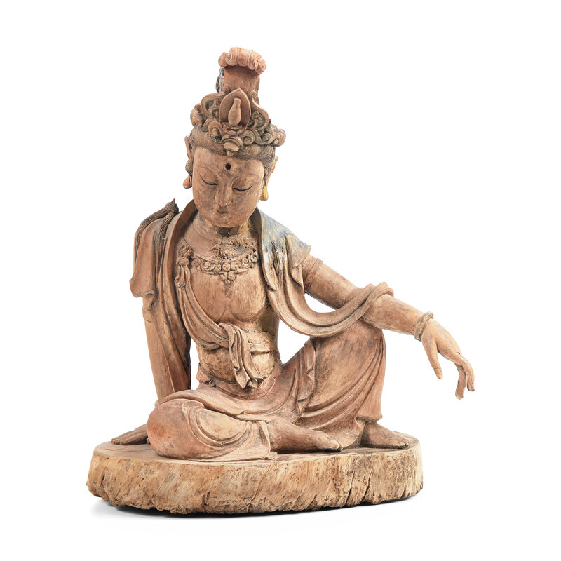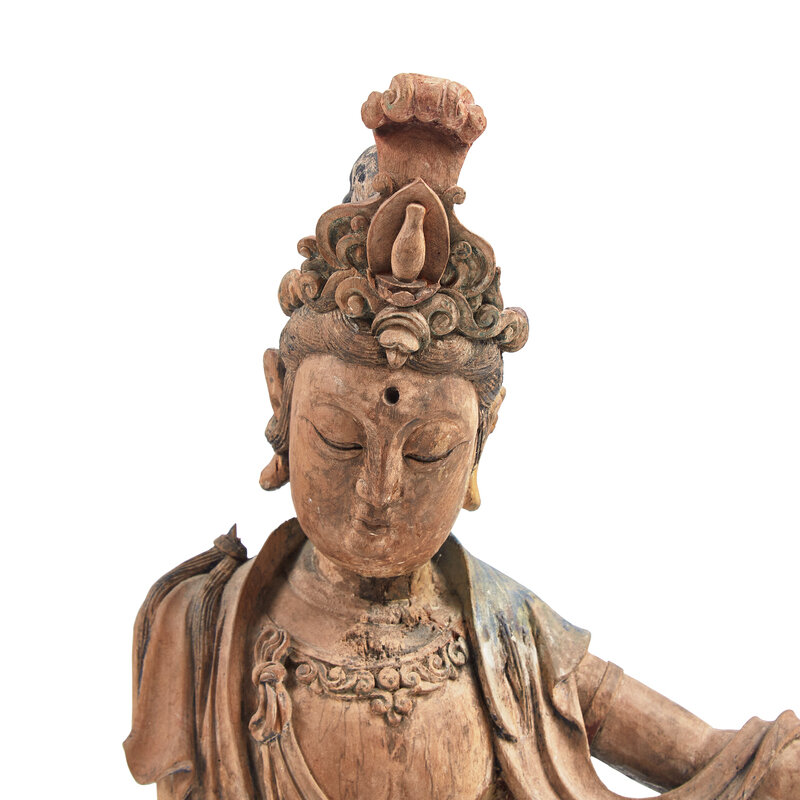 A Chinese Carved and Painted Wood Figure of Guanyin, Ming Dynasty or Earlier