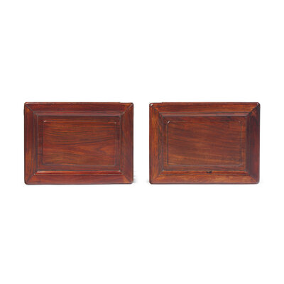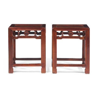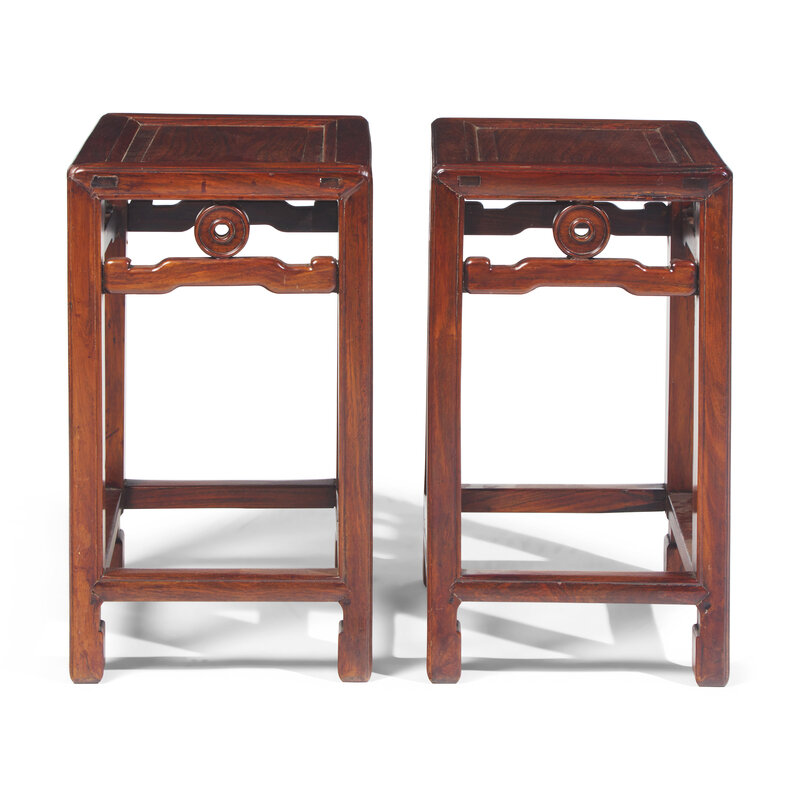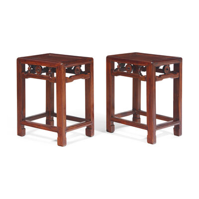 A Pair of Chinese Huanghuali Corner Leg Stools, Fangdeng, Late Qing Dynasty