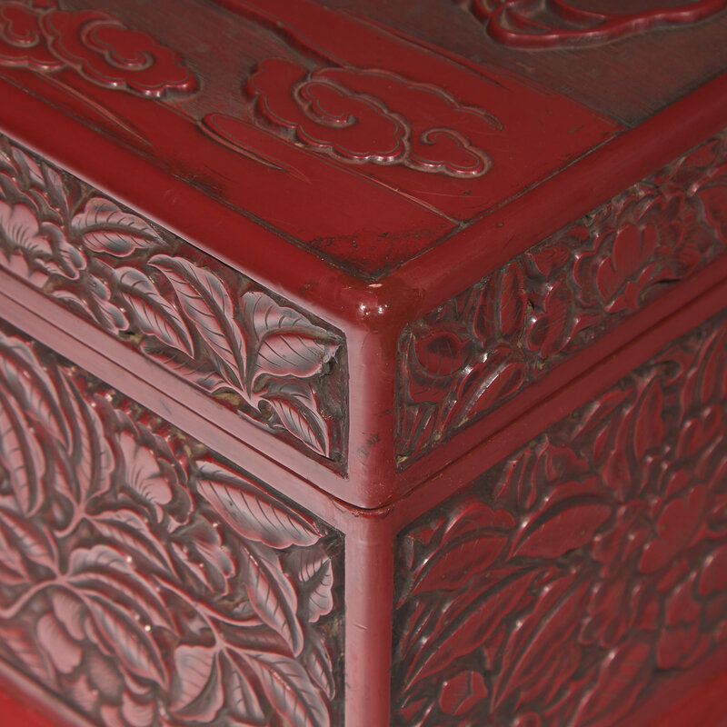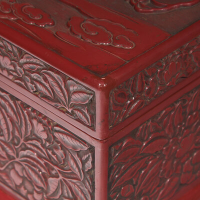 A Large Chinese Carved Cinnabar Lacquer Rectangular Box and Cover, 19th Century