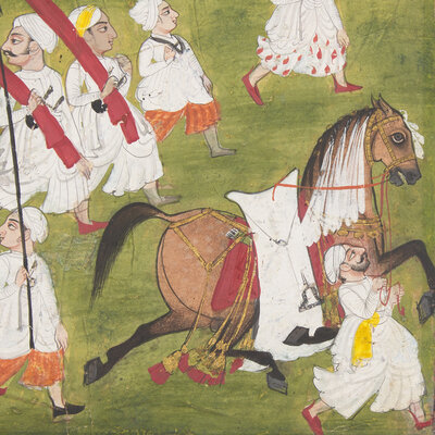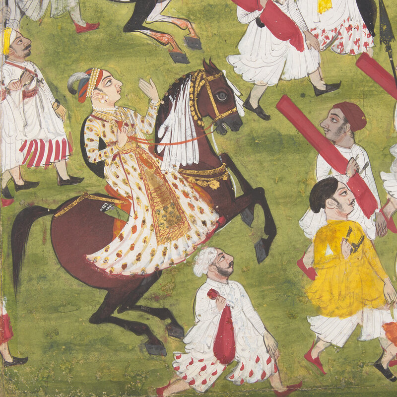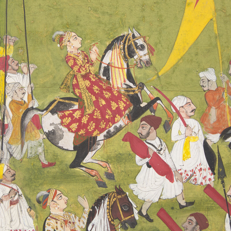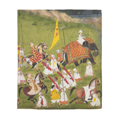 A Portrait Painting of a Royal Procession with Two Equestrian Princes, Rajasthan, Mewar, First Half of 18th Century