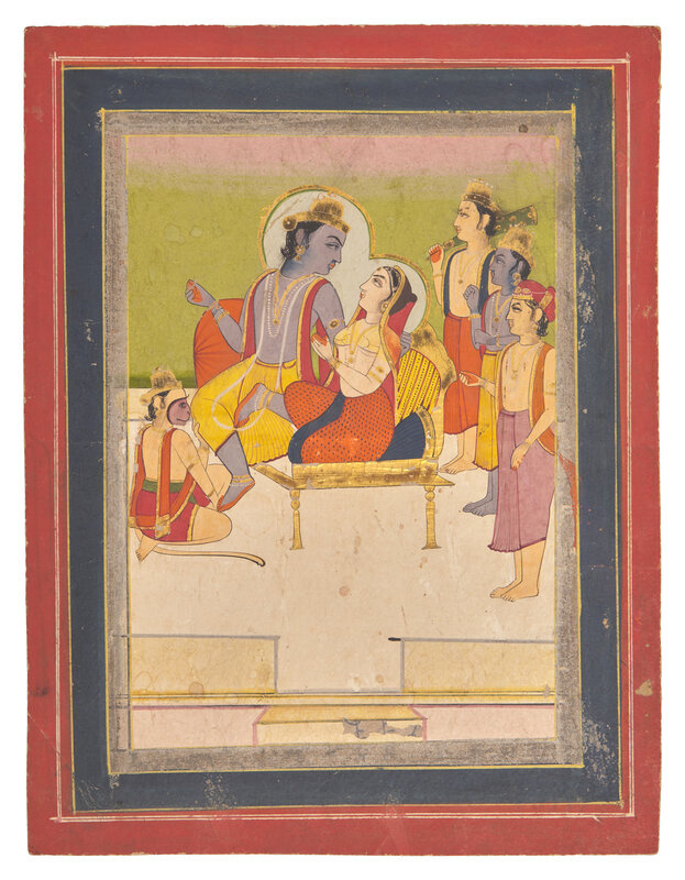 A Painting of Rama and Sita Enthroned with Hanuman, Probably Delhi, Late 19th/Early 20th Century