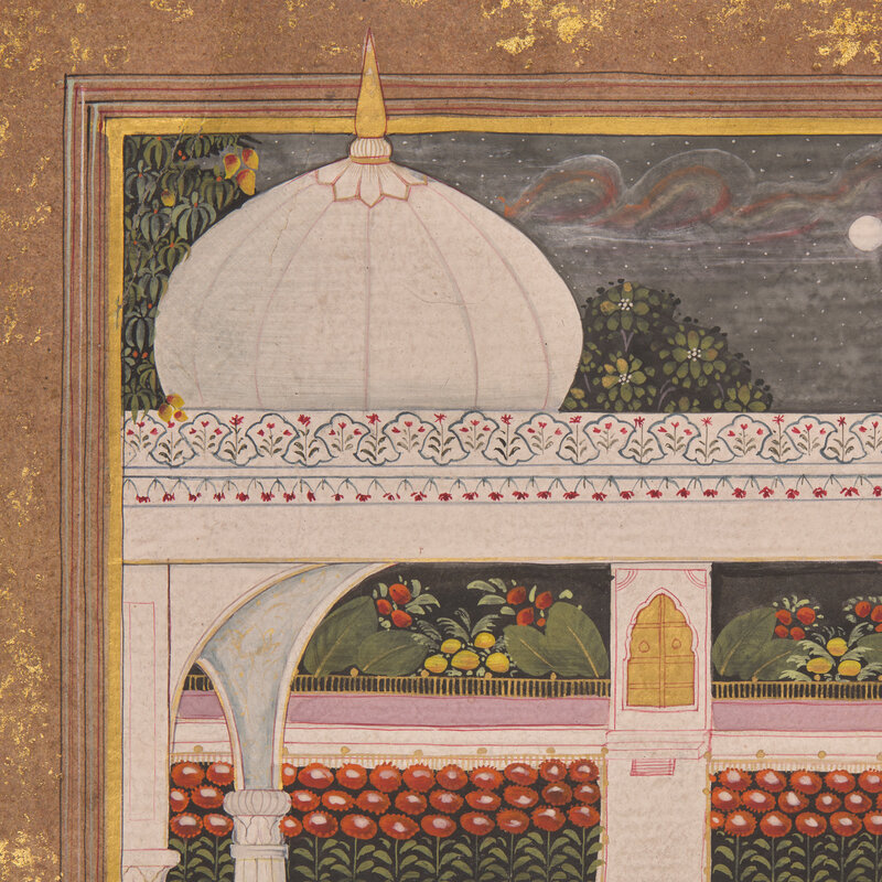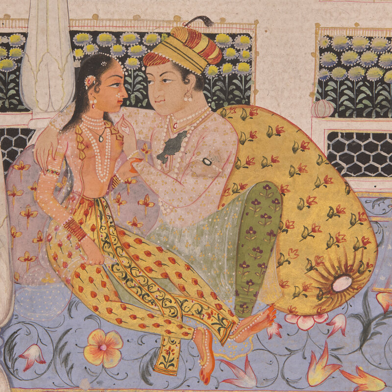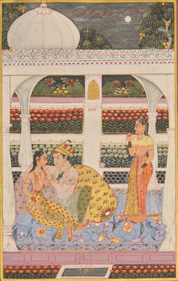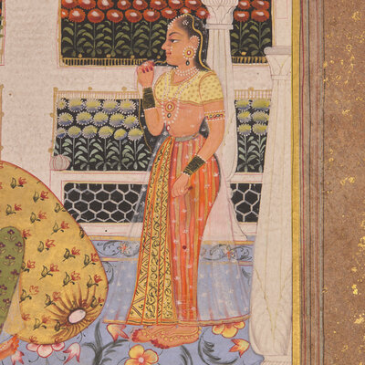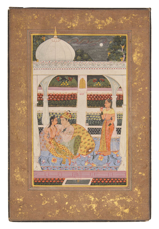 A Painting of an Amorous Scene Within the Harem of the Mughal Court, India, In the Manner of Jaipur, Rajasthan, 20th Century
