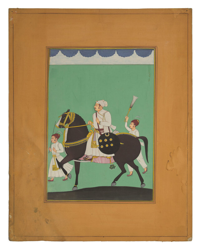 A Painting of an Equestrian Prince in White with Two Attendants, Jodhpur School, 20th Century