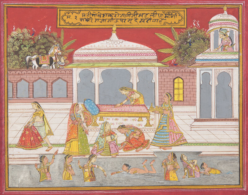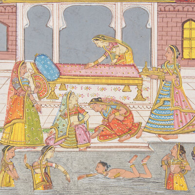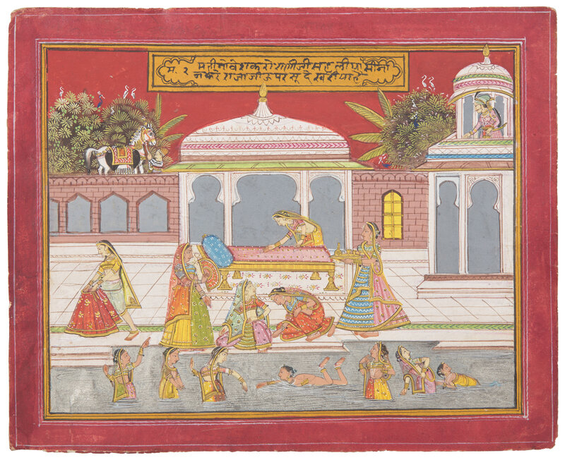 A Painting of Maidens Bathing in a Palace Pool, North or Western India, 19th/20th Century