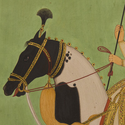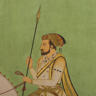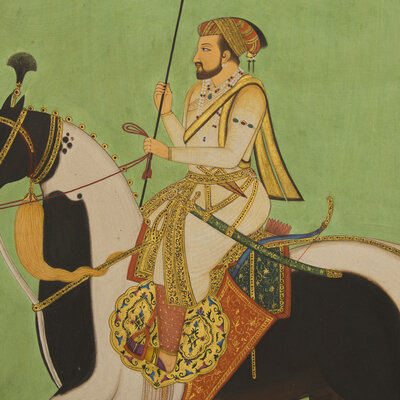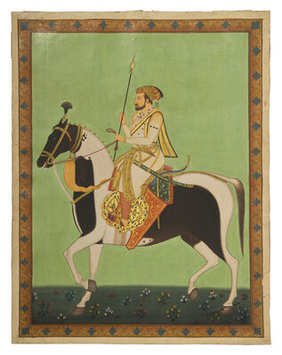 A Painting of the Mughal Emperor Shah Jahan Astride His Stallion, India, Rajasthan, 20th Century