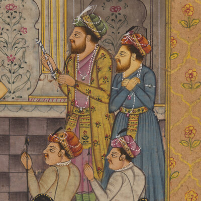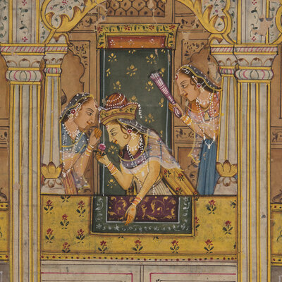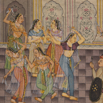 A Painting of a Mughal Harem Scene at Court, North India, 20th Century