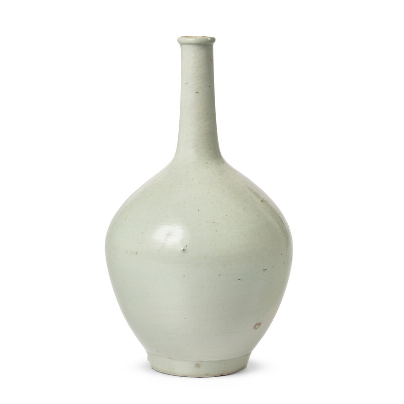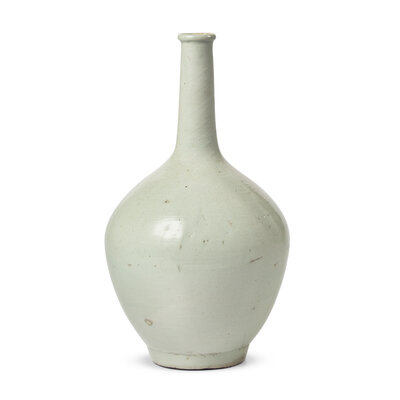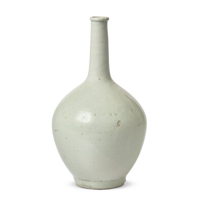 A Korean White Glazed Porcelain Tall-Neck Bottle Vase, Joseon Dynasty, 18th Century