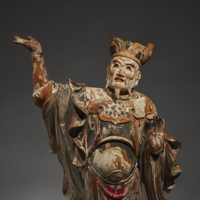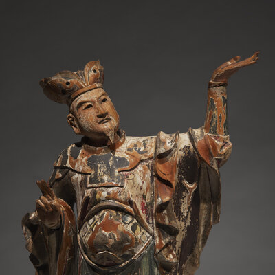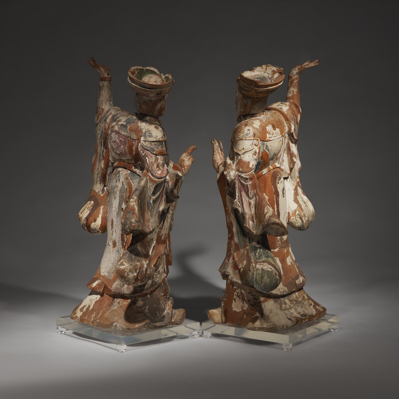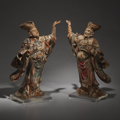 A Pair of Japanese Carved and Painted Wood Figures of Heavenly Dignitaries, Edo Period