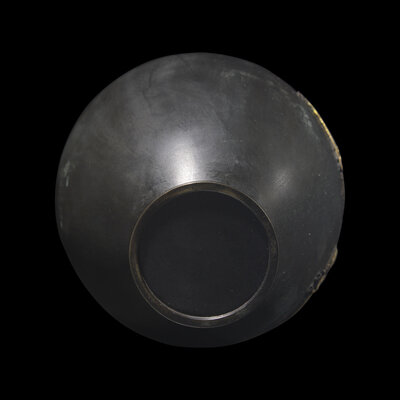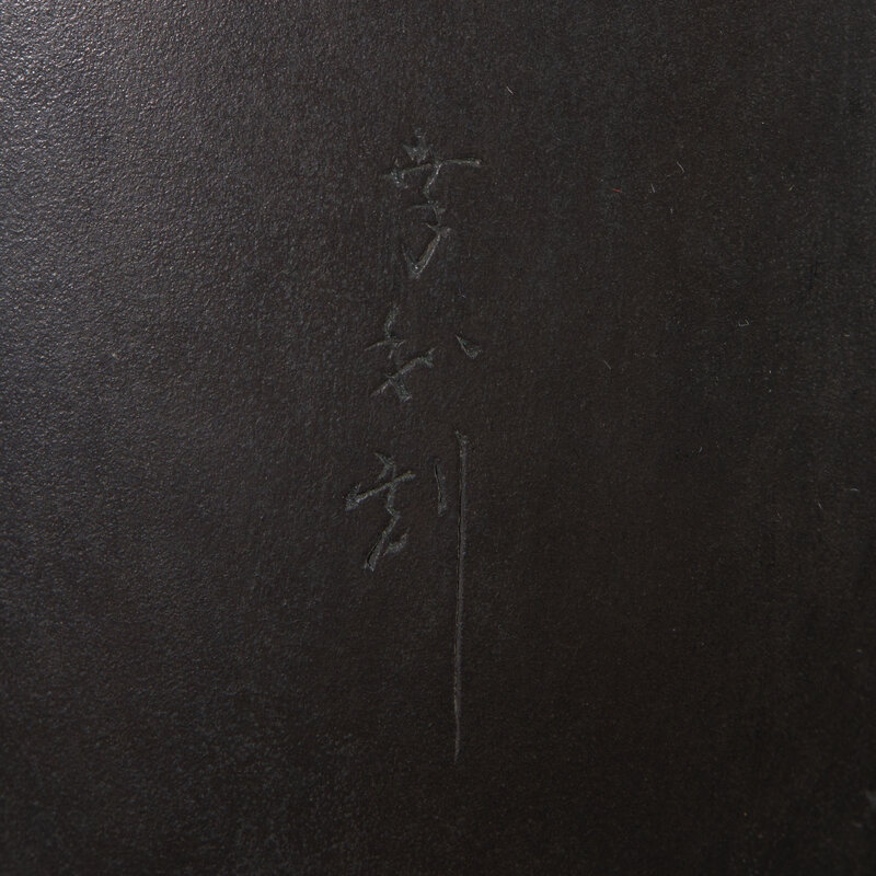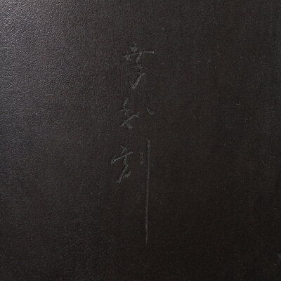 Depicting a sinuous three-clawed dragon against a dark matte ground, incised signature above base.