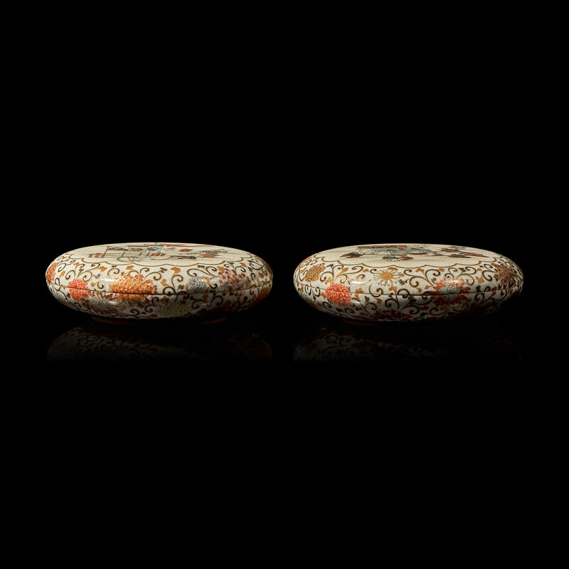 A Rare Pair of Japanese Satsuma-Type Kogo, Yabu Meizan; Meiji Period