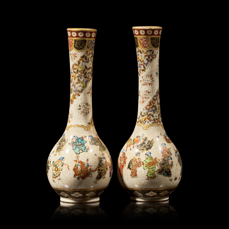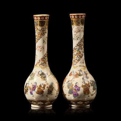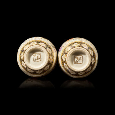 A Pair of Satsuma-Type 'Playing Boys' Cabinet Vases, Yabu Meizan; Meiji Period