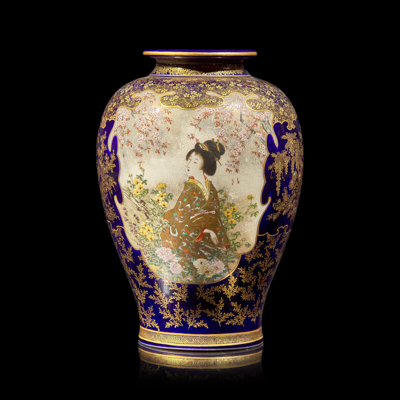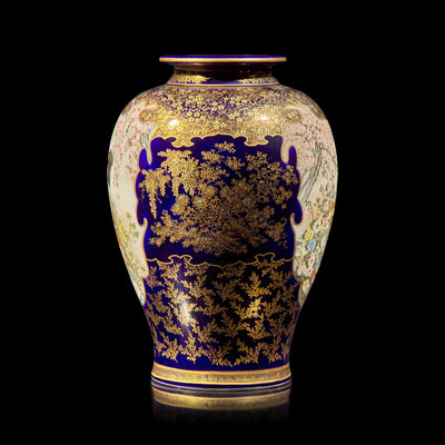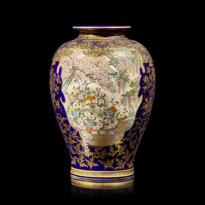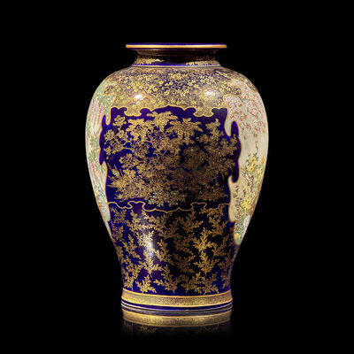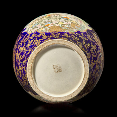 A Satsuma-Type Cobalt-Ground Vase, Kinkozan Studio, Meiji Period