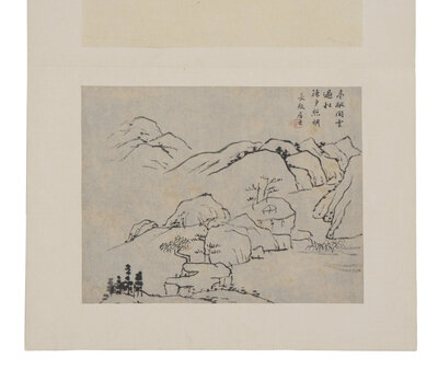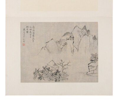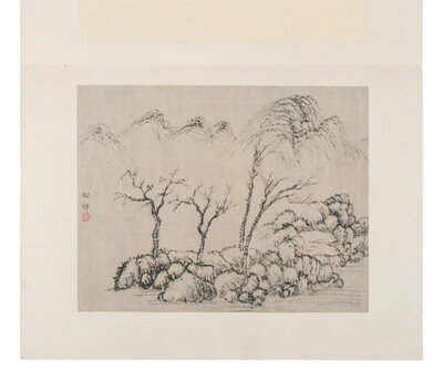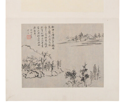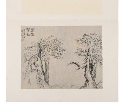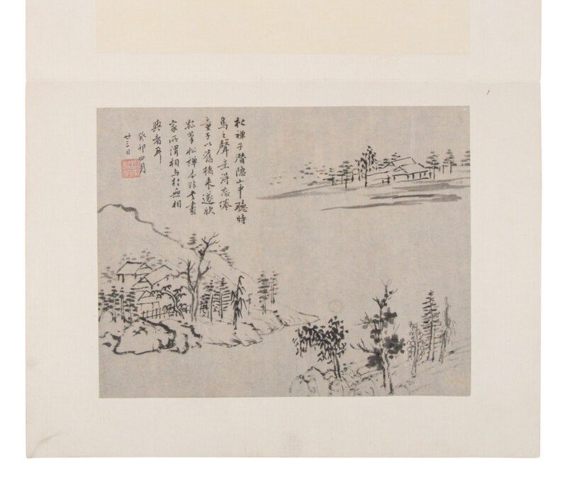 (5)款識:松禪子潛隱山中,聼時鳥之聲,意得忘倦,童子以舊楮來,遂欣點摹松禪,本非愛畫家,所謂相與于無相,與者耳。癸卯(1903)四月廿三日。