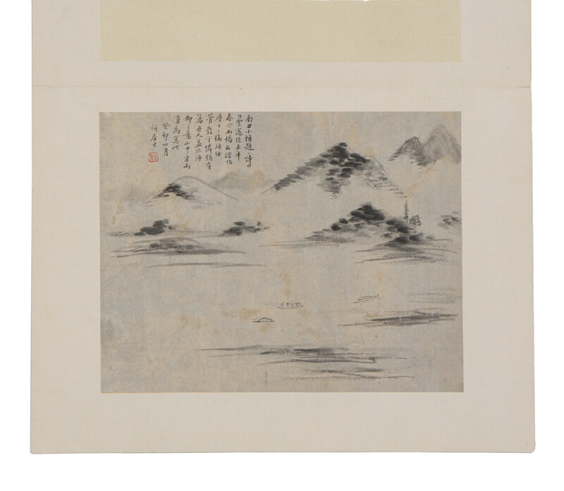 (3)款識:南田小幀題一詩曰”白雲還憶去年春,冷雨楊花踏作塵。十二橋頭絃管散。可憐猶有蕩舟人。“蓋亦漁柳之意,山中坐雨漫為寫此。癸卯(1903)四月,瓶居士。