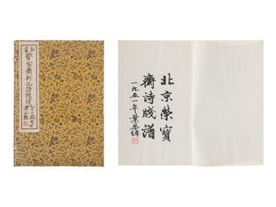 After the founding of the People’s Republic of China, Rong Bao Zhai was renamed Rong Bao Zhai Xin Ji (“The New Rong Bao Zhai”). In March 1951, Rong Bao Zhai Xin Ji issued the Beijing Rong Bao Zhai Xin Ji Poetry Letter Paper in one case of two volumes. The set includes 200 works, comprising designs by celebrated artists such as Qi Baishi, Tang Dingzhi, Zhang Daqian, Li Hechou, Wu Daiqiu, Chen Shizeng, Jin Gongbei, Pu Ru, and Chen Banding, along with various examples of antique letter papers.