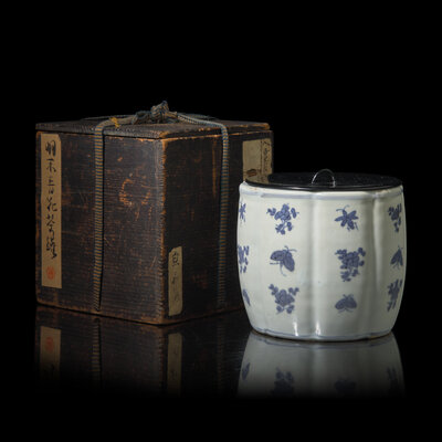 十七世紀 古染付青花草蟲紋罐