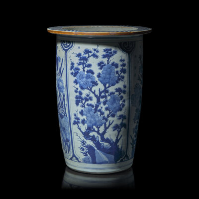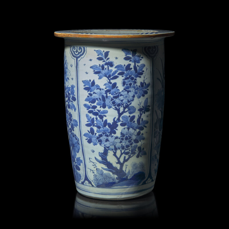 The surface of the porcelain is painted with a composition divided into four distinct registers, each adorned with flowers symbolizing one of the four seasons.