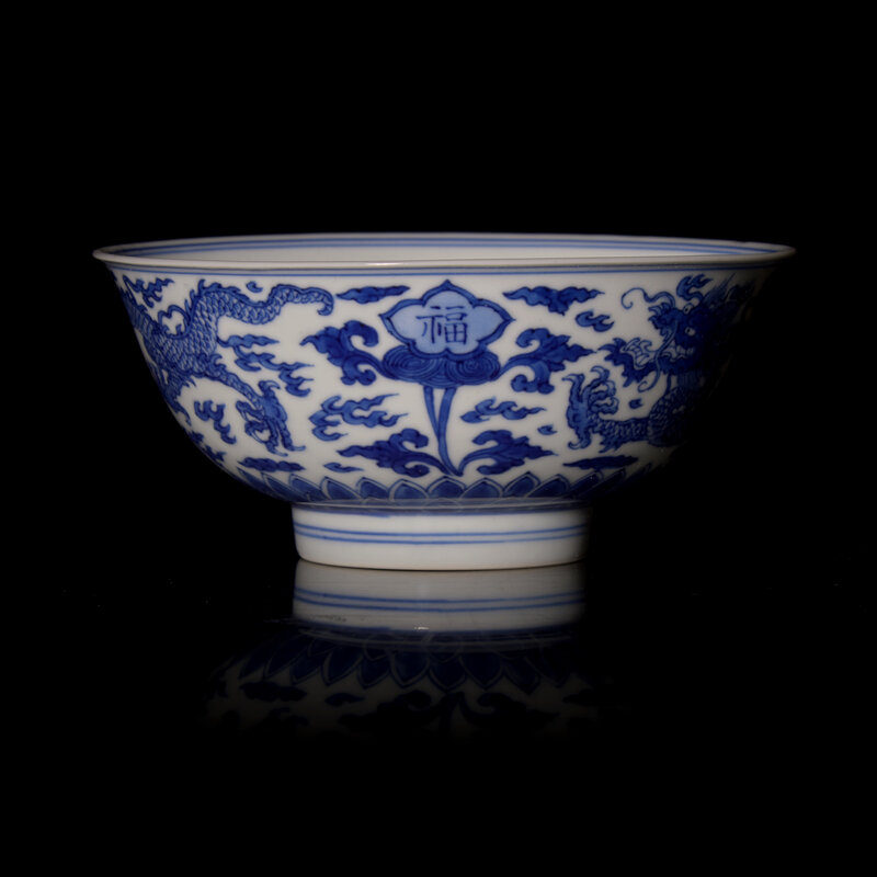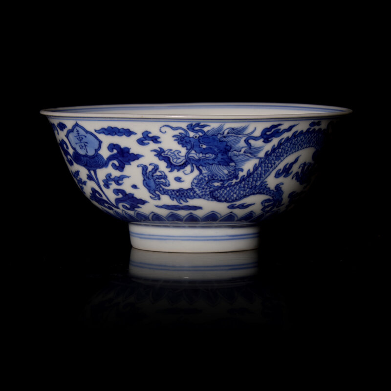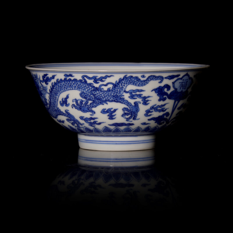 清康熙 青花福壽雲龍紋盌《大清康熙年製》款
