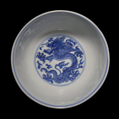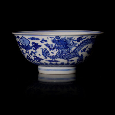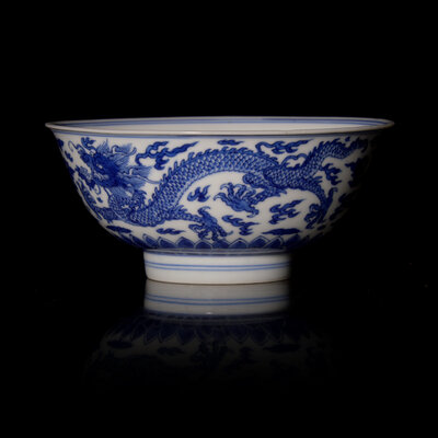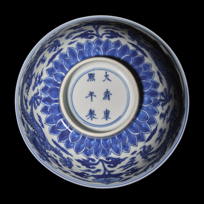 An Imperial Chinese Blue and White Porcelain 'Dragon' Bowl, Kangxi Six-Character Mark and of the Period