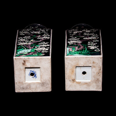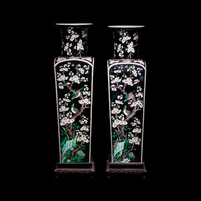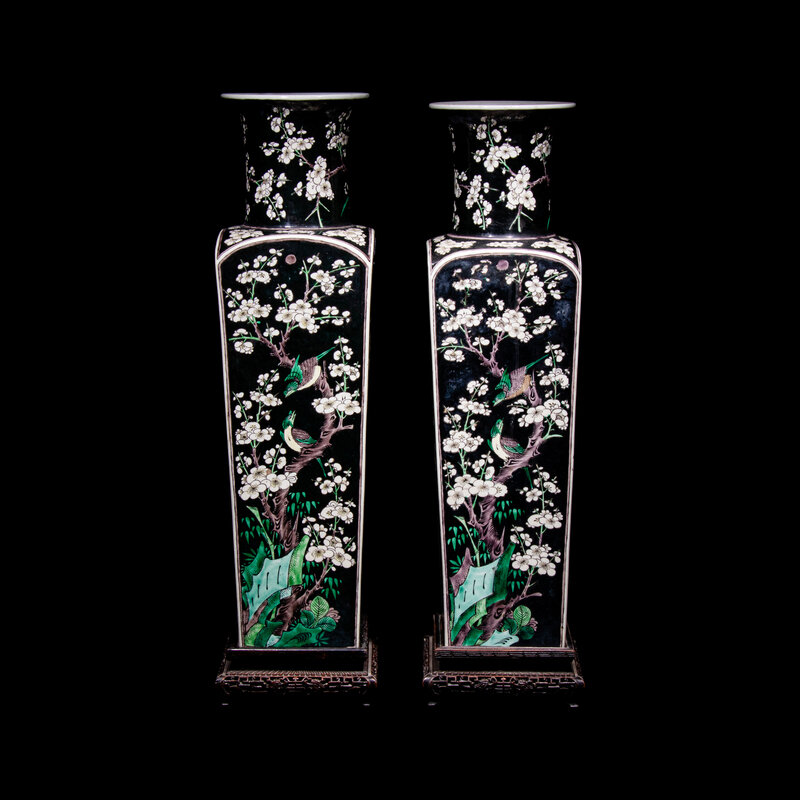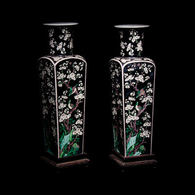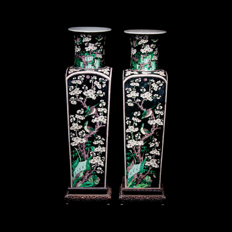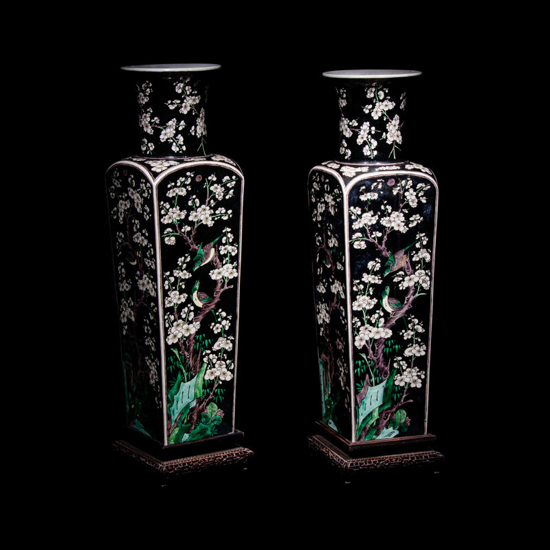 A Pair of Chinese Famille Noire Porcelain Square Vases, 19th Century