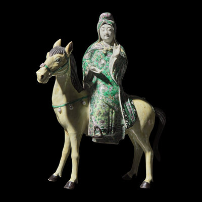 A Chinese Famille Verte Equestrienne Figure, Late Qing/Republic Period