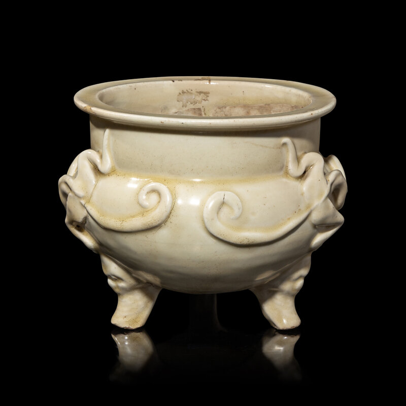 A Chinese White Glazed Tripod Incense Burner, Yuan to Ming Dynasty