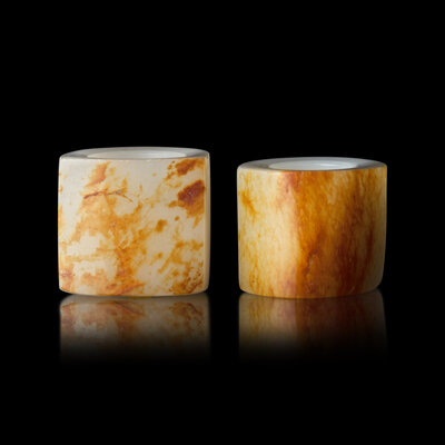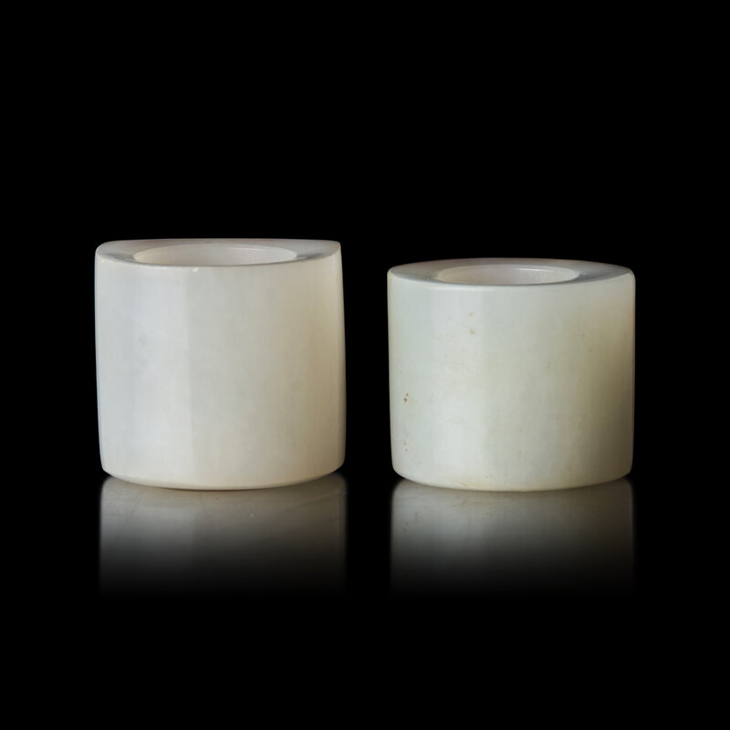 Two Chinese Russet and White Jade Archer's Rings, 18th/19th Century