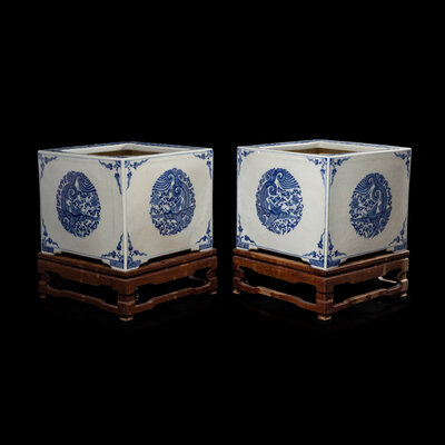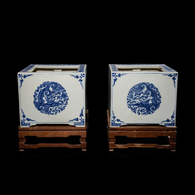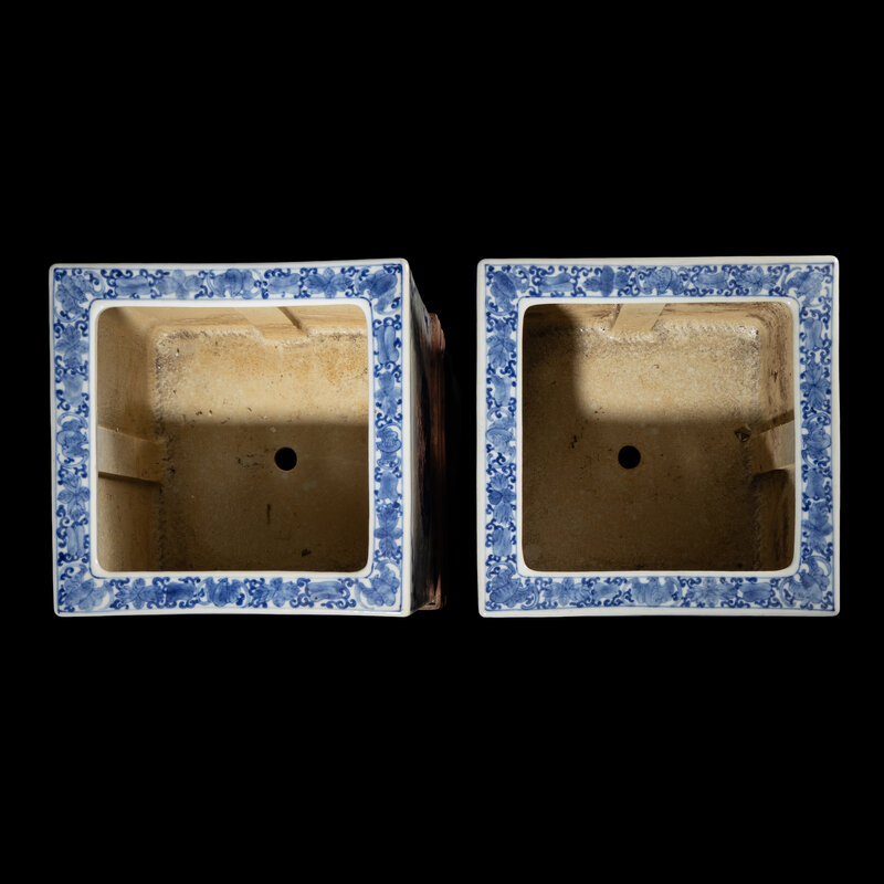 A Pair of Chinese Blue and White Rectangular Porcelain Planters, 19th Century