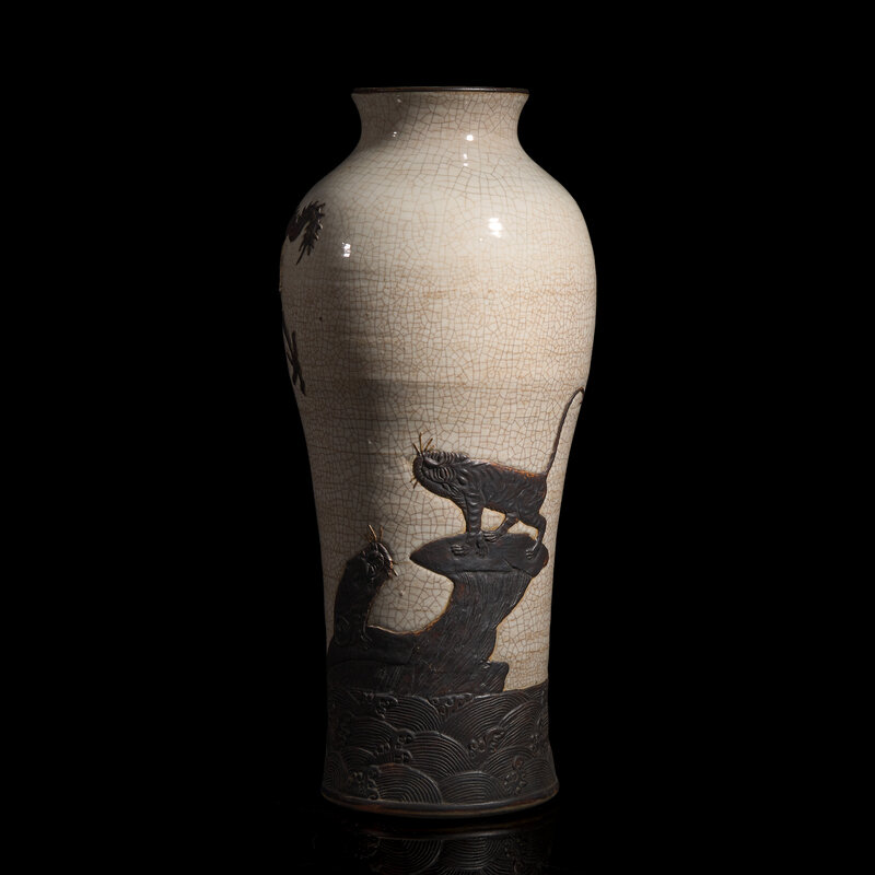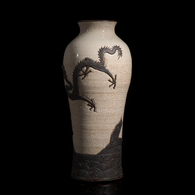 晚清 仿哥釉鐵鏽花龍紋大賞瓶
